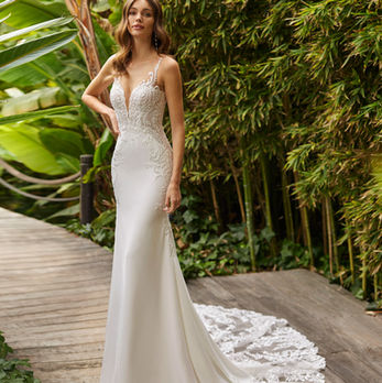 Probier dich kostenlos durch unsere neuesten Kollektionen und finde dein perfektes, figurbetontes Brautkleid!"